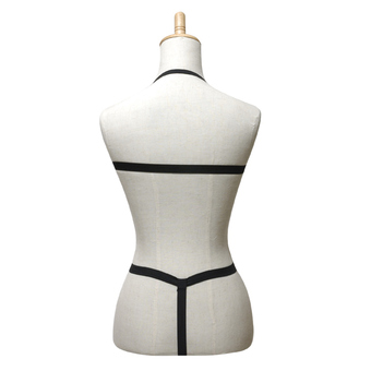 セクシーなランジェリーのようなレースのフリルをあしらったエプロンのようなデザイン。バックスタイルはゴムベルトのみで肌の露出が多く、とってもセクシーなボディスーツです。
