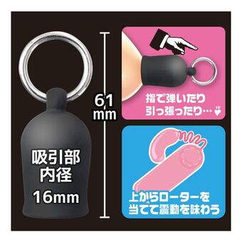 吸い付けた後は、リングを持って思い切り引っ張ったり、サックの上からローター等で振動を与えて虐めてみたり使い方は色々♪