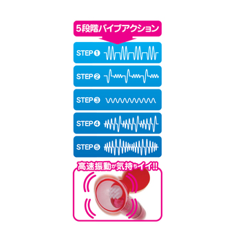 吸引ドーム内部のイボ突起に振動を与えることで、クリを優しく丁寧に集中刺激します。感度を高めやすいよう、変化のある5種類バイブアクション機能を搭載しました。