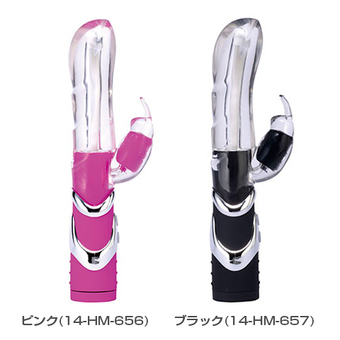従来のハイスペックを完全継承!5種類の回転×5種類の振動=25通りのムービング刺激!ハイスピード回転&ハイパワー振動!曲げて使える、Gスポットを容赦なく刺激するボディフォルム!かわいいウサギちゃん子機による強力クリちゃん責め!防水加工で、お風呂でも使用可能!オリジナリティ豊かな未来的なデザインをもつコントローラーボックス!