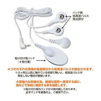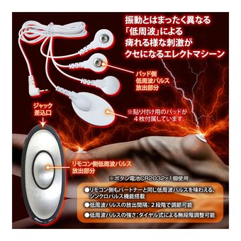 ★ダイヤル式のパワーコントロール ★低周波パルスの速さを2段階で切り替え可能 ★リモコン側も低周波刺激を感じられるシンクロパルス機能搭載 ■セット内容 本体×1個、コントローラー×1個、ボタン電池(CR2032)×1個 ■希望小売価格 3600円 ■本体サイズ 貼り付け用パッド:直径40mm、コントローラーサイズ:全長82mm ■箱サイズ 165×165×55mm