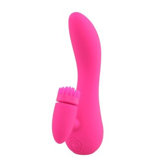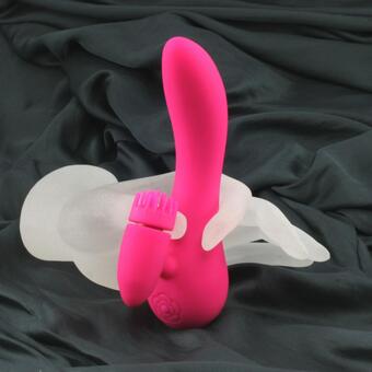 女性の挿入快感を追求したボディラインをもつバイブレーター。洗練されたカーブラインは、女性的な快感を誘発させます。先端部の丸みはGスポット刺激に特化させませた。さらに、クリバイブ部には、回転機構を搭載しました。びっしりと生えた突起がぐるんぐるんと回って、クリトリスを刺激します。クリバイブ連結部分も柔軟素材なので、ぴったりとフィットするよう調整ができます。